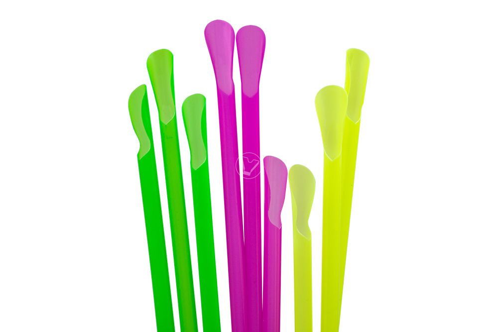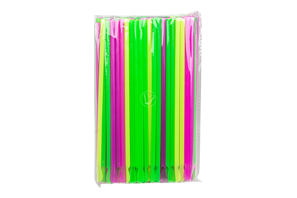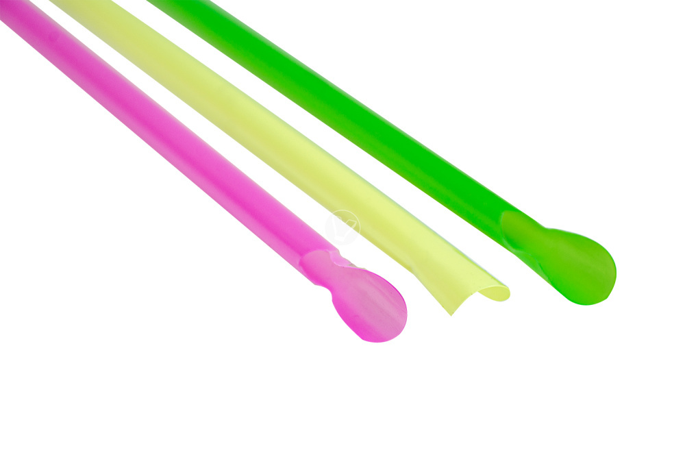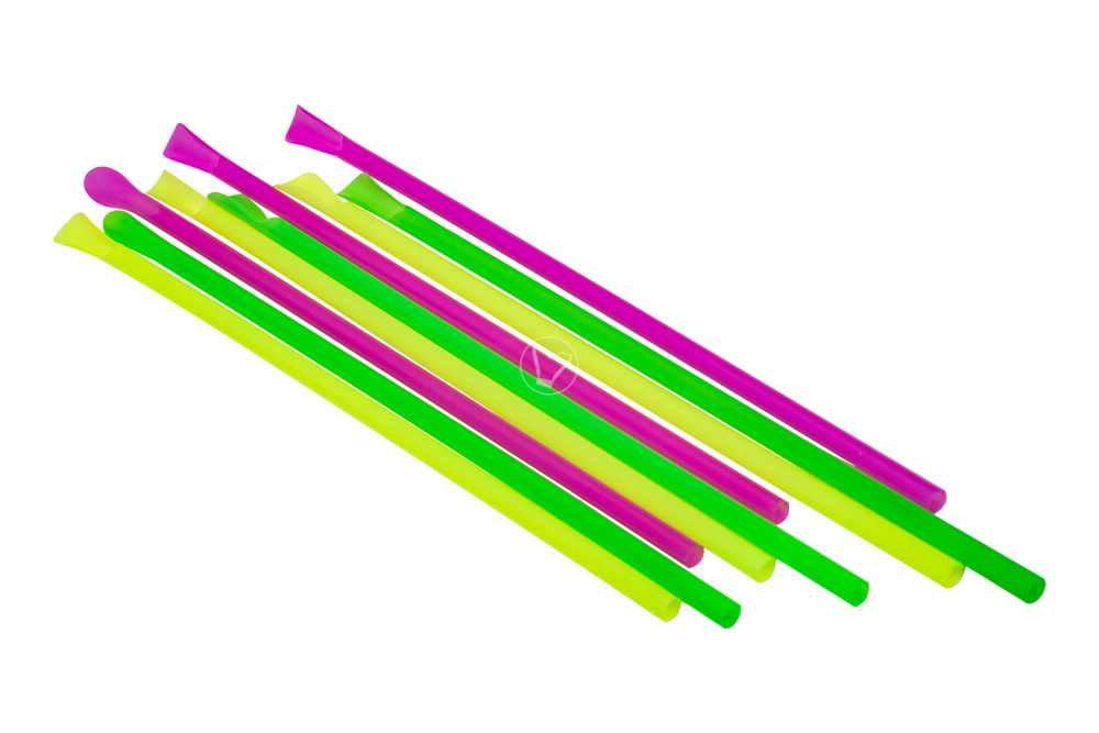 Трубочки пластиковые, цветные с ложечкой 6*240 мм.