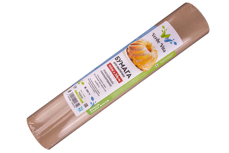 Коричневая пергаментная бумага для выпекания, без применения масел. В нынешнее время приготовление пищи на пергаменте очень популярно. Бумага для выпечки пропитана силиконом, что делает ее влагостойкой, антипригарной и термостойкой. Пергамент употребляют для приготовления в духовке или микроволновке, мяса, рыбы, пирогов, пиццы, горячих запеканок. Бумага для выпечки делает готовку приятной и легкой
