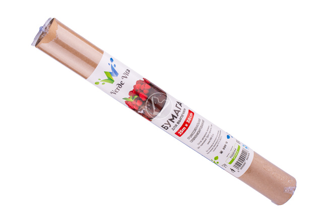 Коричневая пергаментная бумага для выпекания, без применения масел. В нынешнее время приготовление пищи на пергаменте очень популярно. Бумага для выпечки пропитана силиконом, что делает ее влагостойкой, антипригарной и термостойкой. Пергамент употребляют для приготовления в духовке или микроволновке, мяса, рыбы, пирогов, пиццы, горячих запеканок. Бумага для выпечки делает готовку приятной и легкой