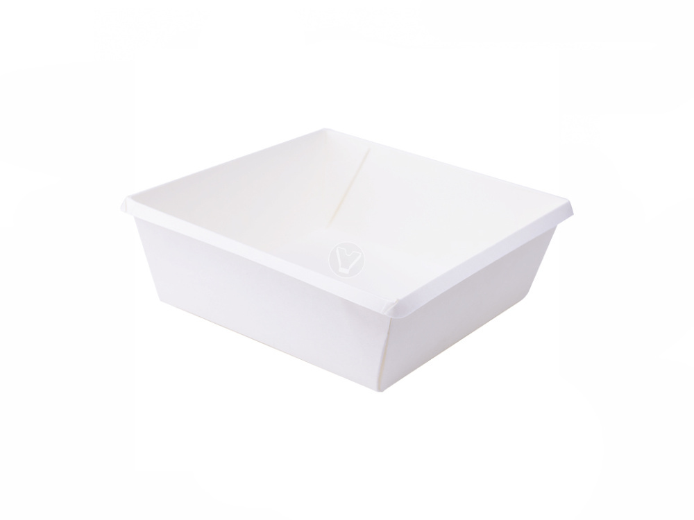 Одноразовый контейнер в белом цвете. Контейнер из картона полностью ламинирован изнутри, что способствует удержанию влаги и жира. Одноразовая упаковка в основном употребляется для салатов и полу-жидких блюд. В салатнице можно подогревать еду в микроволновой печи. Салатница применяется в кафетериях, ресторанах, гостиницах и фастфуде